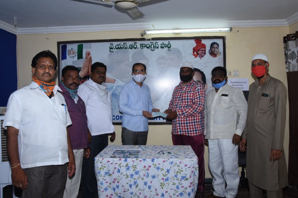 కర్నూలు:(విభారె న్యూస్): నగరంలోని స్థానిక రాయల్ ఫంక్షన్ హాల్ నందు ఎమ్మెల్యే హాఫిజ్ ఖాన్ గారి చేతుల మీదుగా 40వేల రూపాయలు సీ.యం రిలీఫ్ ఫండ్ క్రింద చెక్ ను బాధితులకు అందజేశారు. 5వార్డుకు చెందిన మున్నా గారి తనయుడు పుట్టినప్పటి నుంచి అనారోగ్యంతో బాధపడుతూ సరైన చికిత్స చేయించలేక ఆర్థిక సహాయ నిమిత్తం ఎమ్మెల్యే హాఫిజ్ ఖాన్ గారిని కోరడం జరిగింది. ఈయన పరిస్థితి విన్న ఎమ్మెల్యే హాఫిజ్ ఖాన్ గారు ప్రభుత్వం నుంచి సీ.యం.రిలీఫ్ ఫండ్ నుండి ఆ బాధితుడికి సహాయంగా 40వేల రూపాయలు విడుదల చేయించి ఆ చెక్ ను వారికి అందజేశారు. కార్యక్రమంలో వైస్సార్సీపీ నాయకులు 5వార్డు మాజీ కార్పొరేటర్ దండు శేషు యాదవ్ మరియు అక్బర్ పటేలా, వెల్లంపల్లి శ్రీవినివాసులు, అబ్దుల్హ మహబూబ్, వైస్సార్సీపీ నాయకులు తదితరులు పాల్గొన్నారు